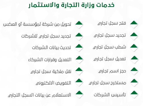 المساعدة في إصدار وتجديد السجلات التجارية وحجز الأسماء التجارية إلكترونياً.